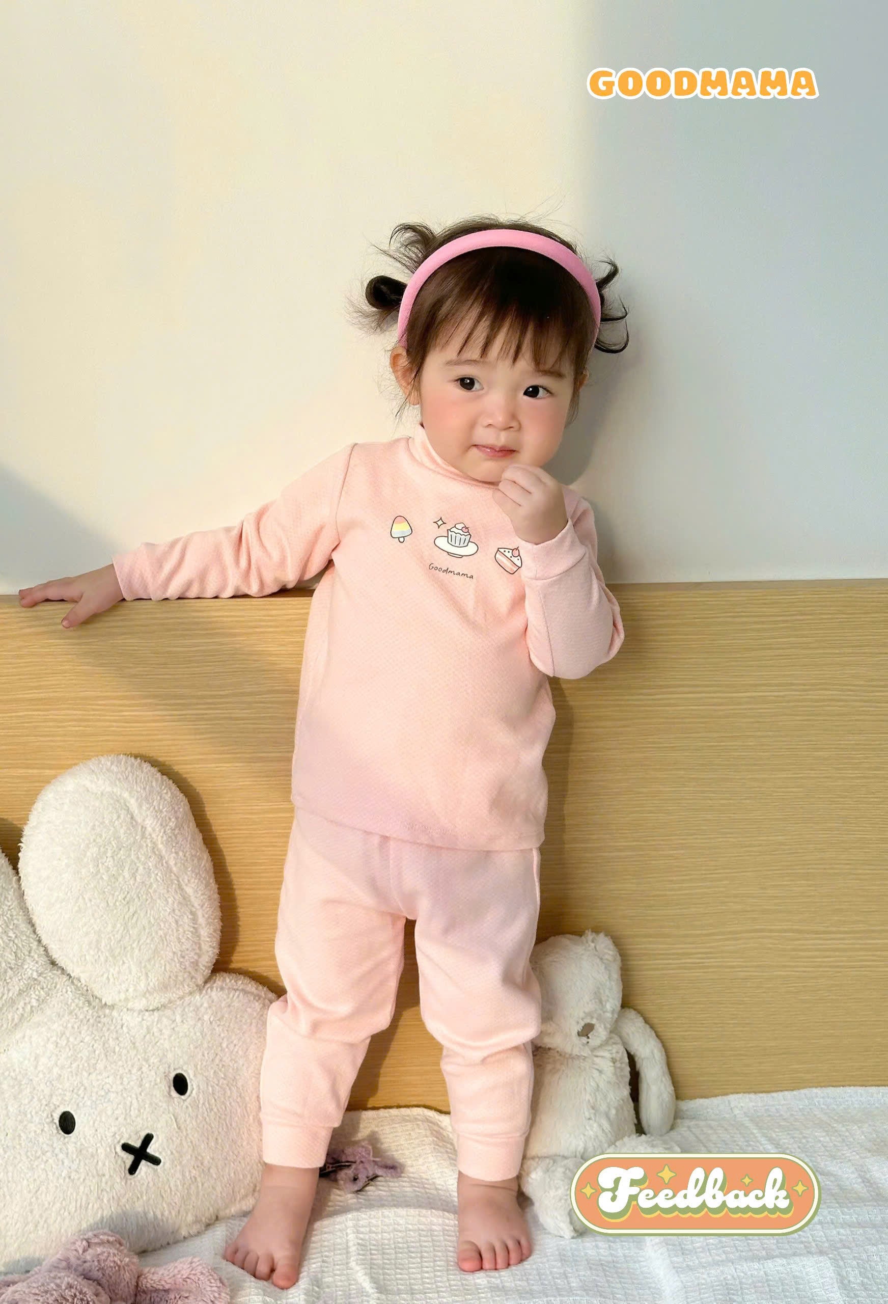 👶 Được làm từ chất liệu cotton dày dặn, thấm hút tốt, bộ giữ nhiệt giúp giữ ấm hiệu quả mà vẫn thoáng khí, mang đến cảm giác dễ chịu cho bé trong những ngày se lạnh hay khi nằm phòng điều hòa. Chất vải an toàn, không gây kích ứng làn da nhạy cảm.