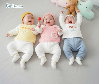 👶 Được làm từ chất liệu chần bông Bamboo cao cấp, bộ sơ sinh mang đến độ ấm vừa phải, mềm mại và thoáng khí tự nhiên, cực kỳ phù hợp cho bé trong những ngày thời tiết se lạnh hoặc khi nằm phòng điều hòa. Vải an toàn cho làn da nhạy cảm, không gây kích ứng.