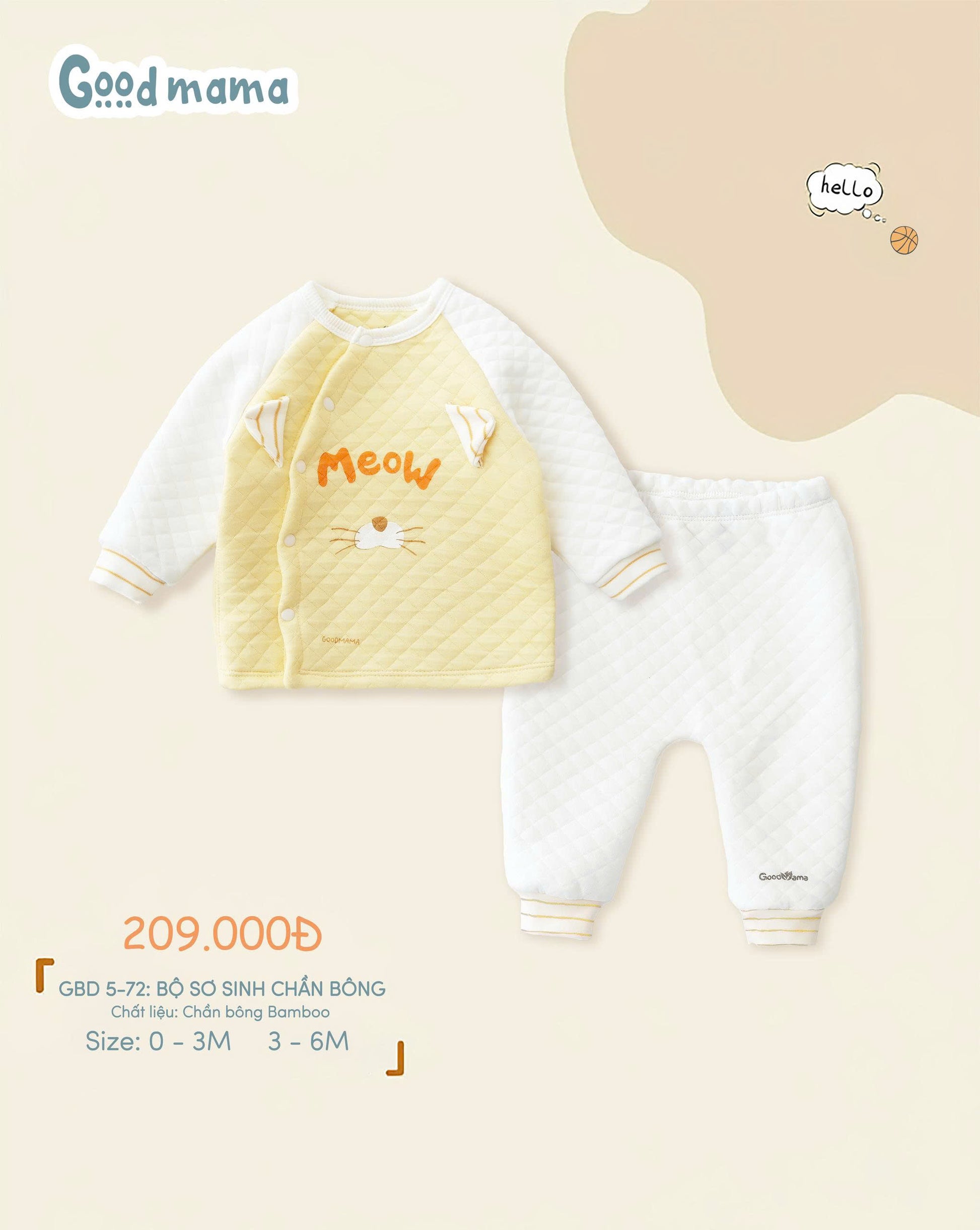 GBD 5 - 72: BỘ SƠ SINH CHẦN BÔNG – Mềm Mại, Ấm Áp, Dịu Êm Cho Bé Những Ngày Đầu Đời