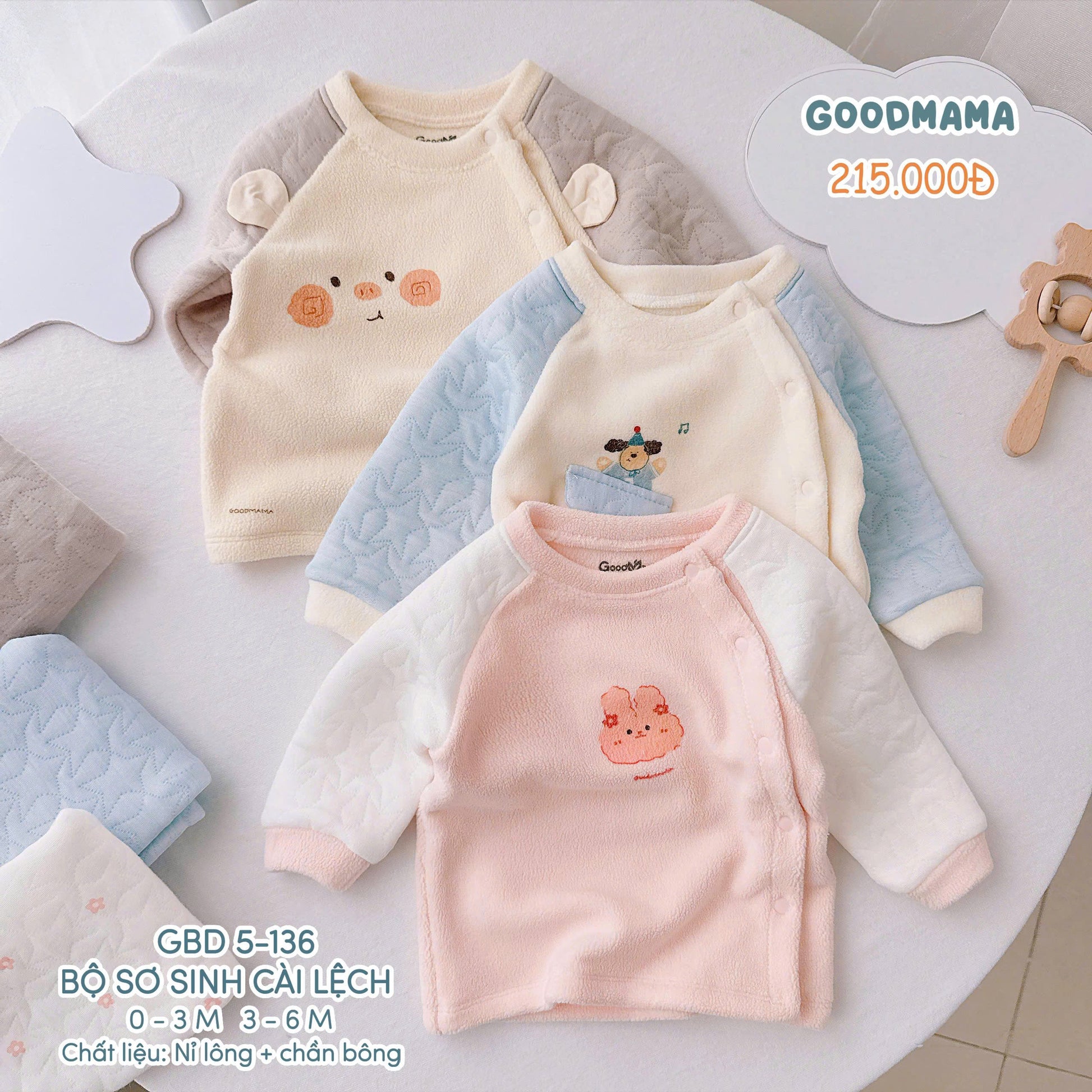 👶 Chất liệu cao cấp: Kết hợp giữa nỉ lông mềm mạilớp chần bông giữ nhiệt, giúp bé yêu luôn ấm áp trong những ngày đầu đời, đặc biệt là mùa đông lạnh giá.