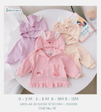 GBD 5 - 48: ÁO KHOÁC NỈ SƠ SINH – Ấm Áp, Mềm Mại, Dễ Thương Cho Bé Mùa Đông