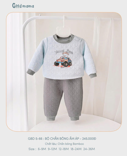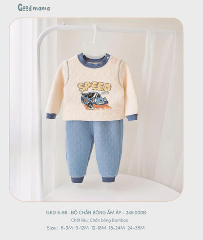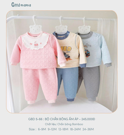 👶 Bộ dài tay được làm từ chất liệu Bamboo chần bông, giữ nhiệt tốt nhưng vẫn thoáng khí, mềm mại, cực kỳ lý tưởng cho làn da nhạy cảm của bé trong mùa thu đông.