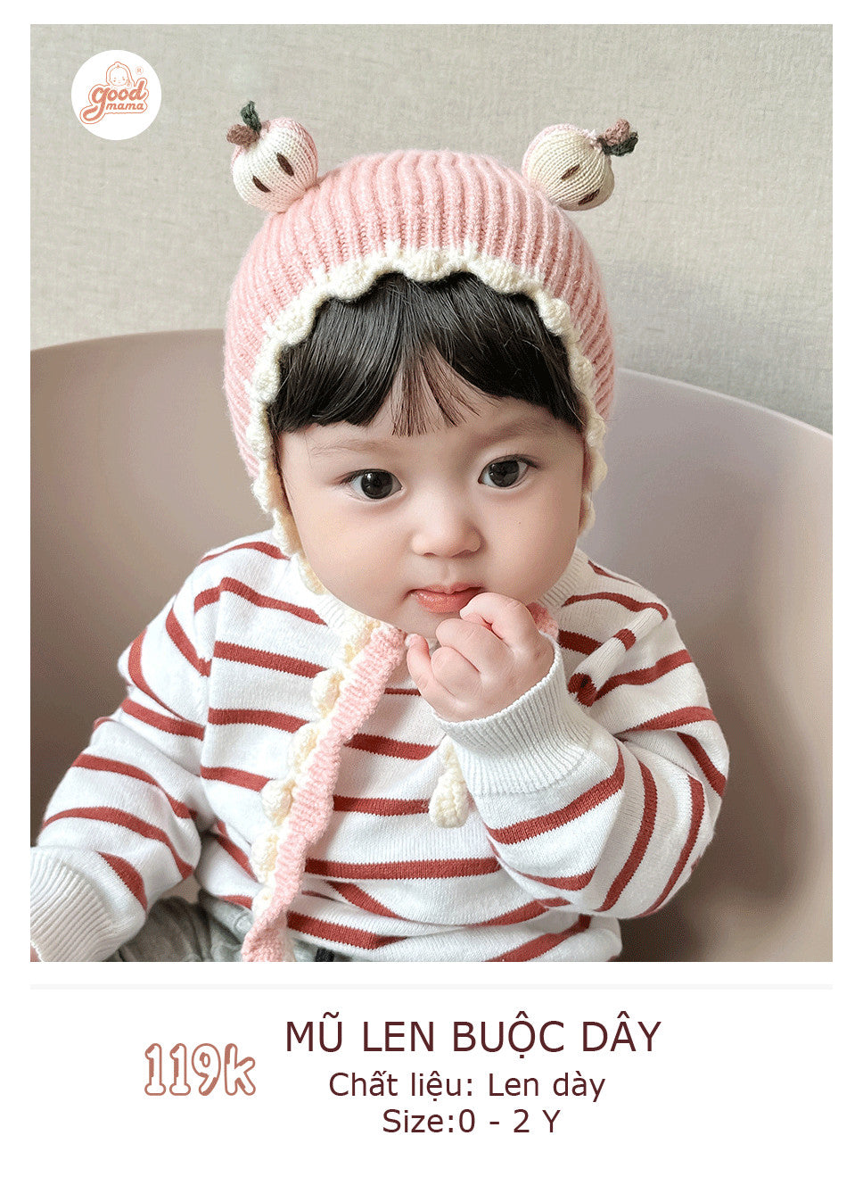 - Len được thêu không quá chặt, đủ để giữ ấm cho đầu bé mà vẫn bí bách