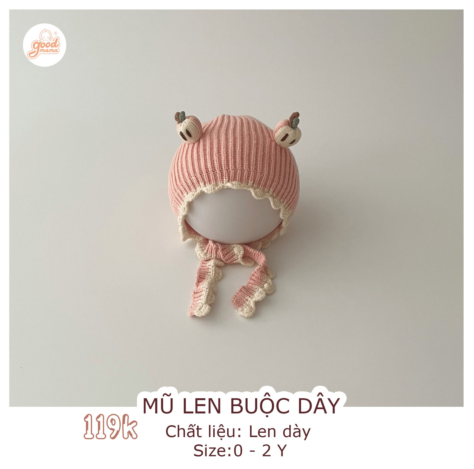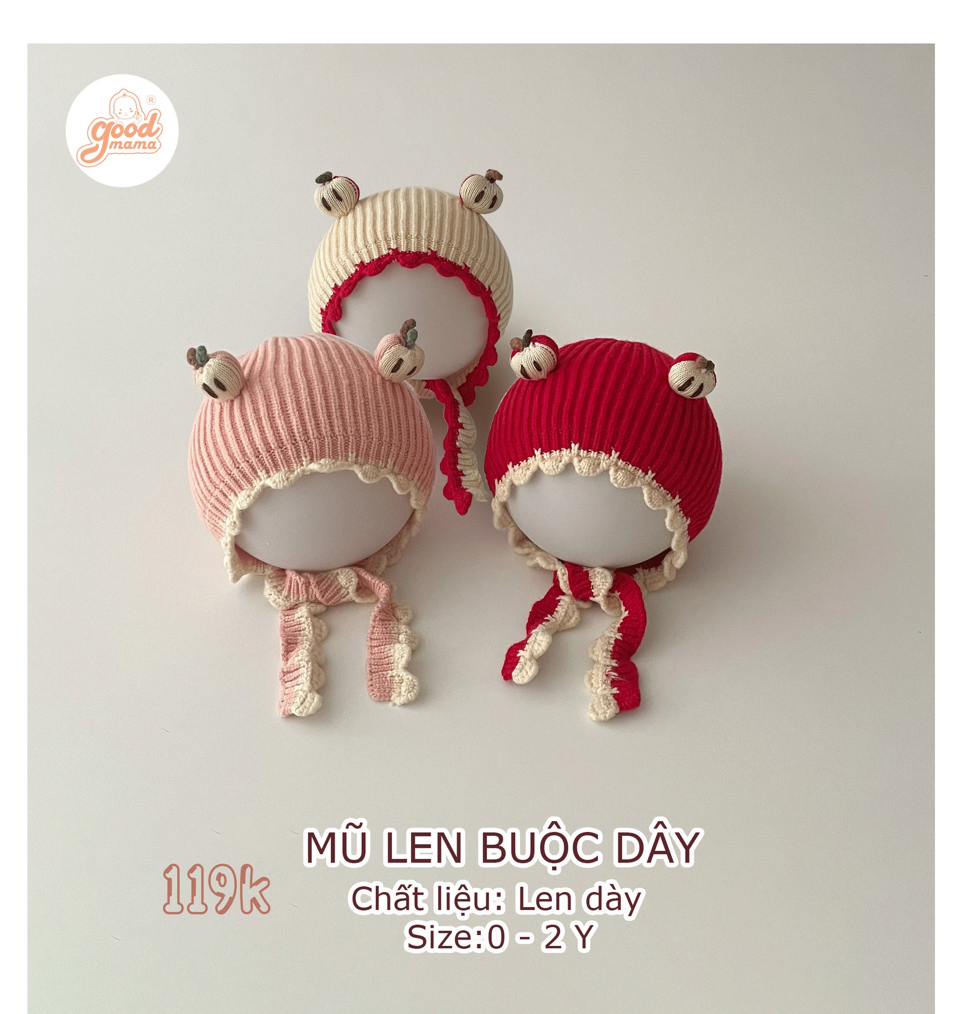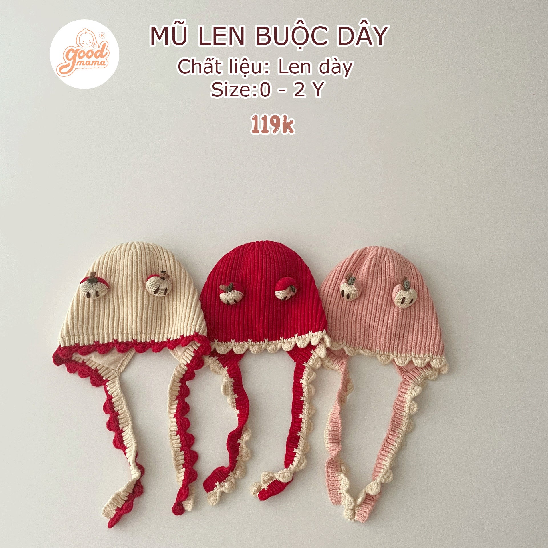 Mũ Len Buộc Dây Chất Liệu Len Dày Dành Cho Bé Gái 0-2YVới 3 màu be, hồng, đỏ mẹ có thể thoải mái lựa chọn cho bé