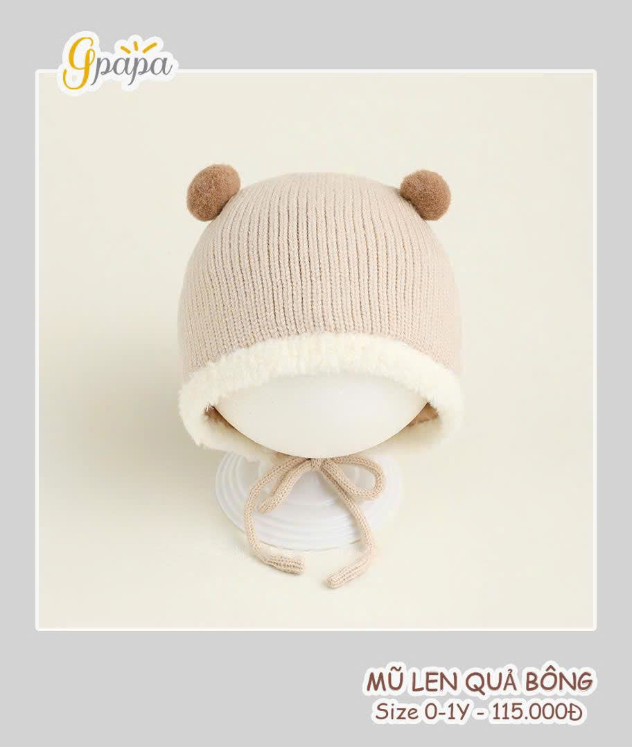 🎀 Chất len mềm mịn, co giãn nhẹ, không gây kích ứng làn da non nớt của bé. Điểm nhấn là quả bông tròn xinh xắn trên đỉnh đầu, tạo nên vẻ ngoài đáng yêu, nổi bật.